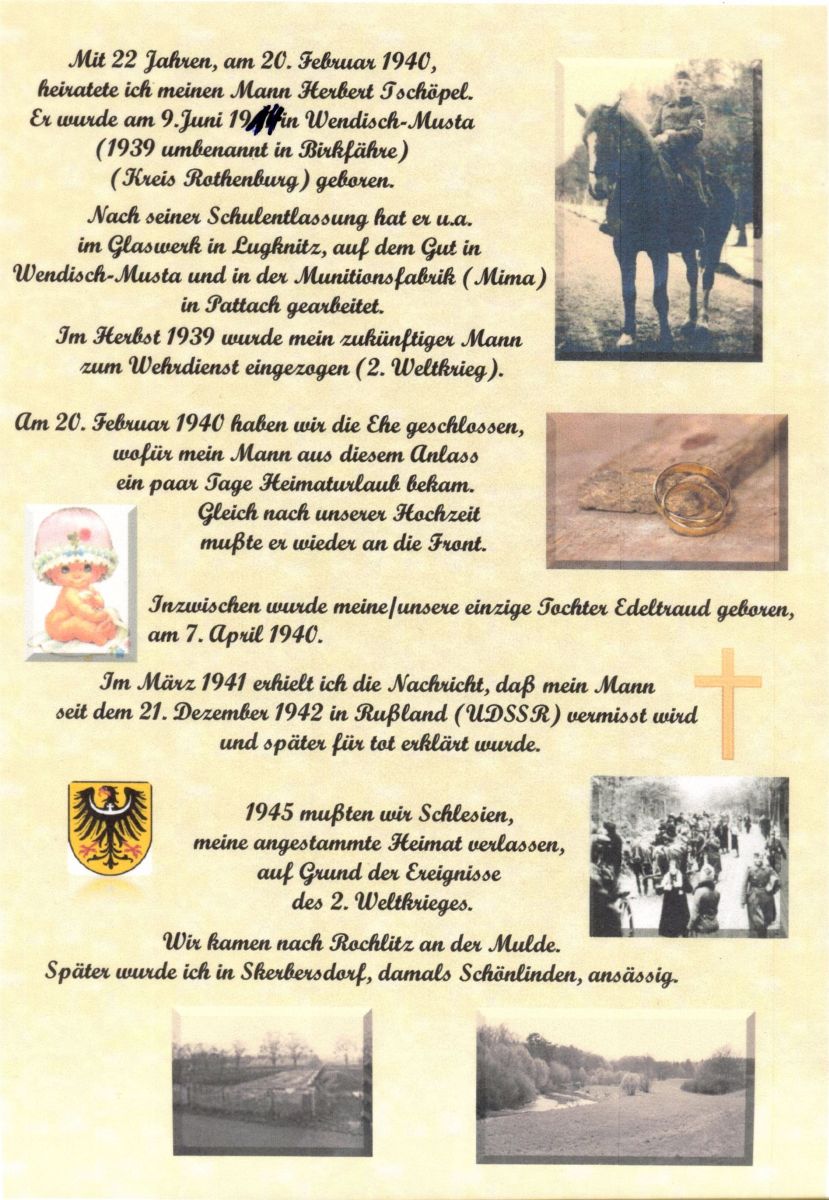 Am Ersten Weihnachtsfeiertag 2022 wurde Wally Tschöpel 105 Jahre alt. So alt ist wohl in Skerbersdorf noch nie jemand geworden. Wir gratulieren Wally Tschöpel ganz herzlich und wünschen ihr vor allem Gesundheit!